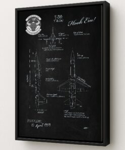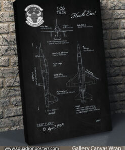 The T-38 Talon is a two-seat, twinjet supersonic jet trainer. It was the world’s first supersonic trainer and is also the most produced. The T-38 remains in service as of 2020 in several air forces. The United States Air Force operates the most T-38’s. Check out this stunning 87th FTS T-38 Talon Blackboard Art by Squadron Posters!