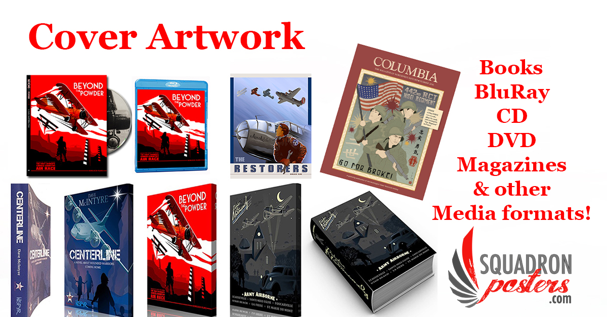 In addition to our world famous vintage style “Military Travel Posters”, Squadron Posters also offers “Commercial Business Artwork”! We specialize in Military and Aviation related Posters and Cover Art yet have the ability to create amazing Art for Authors, Editors, Film Producers and Business Professionals.