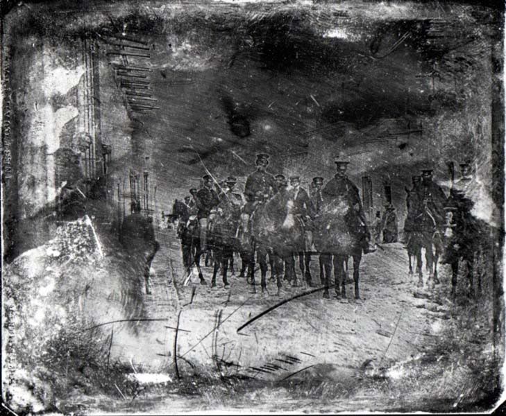 This photo was taken 175 years ago and is one of the first images of a war ever captured on film. It was taken in 1847 of American cavalry riding into the city of Saltillo, during the the war with Mexico. This early photograph is known as a daguerrotype. Since its invention in 1839 photography has come to have an increasing number of military uses.