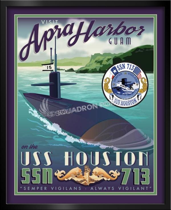 Apra Harbor Guam USS Houston SSN 713 vintage style military aviation travel poster art by – Squadron Posters!