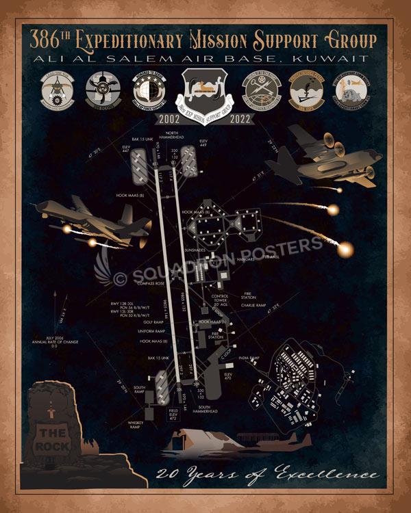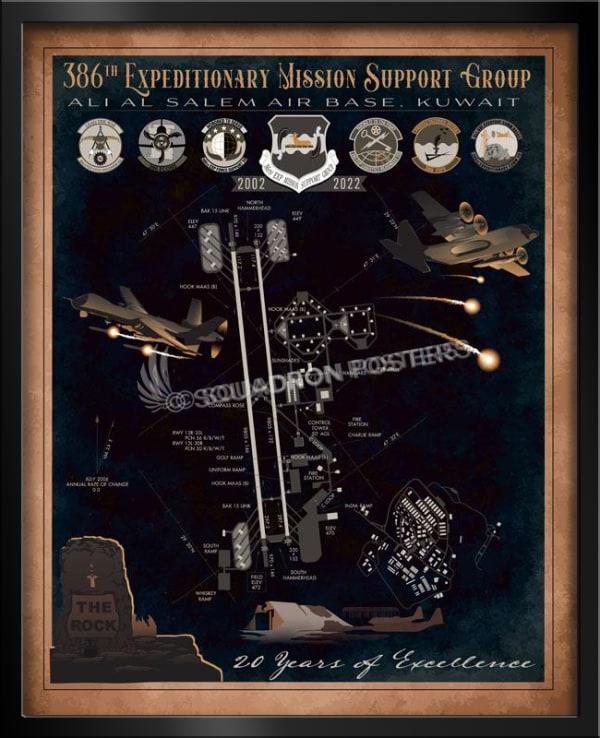 Ali Al Saleem Airfield 386 EMSG vintage style military aviation travel poster art by – Squadron Posters!