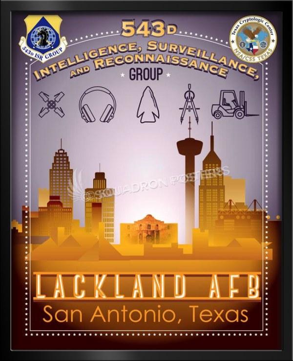 Lackland AFB 543d ISR Group vintage style military aviation travel poster art by – Squadron Posters!