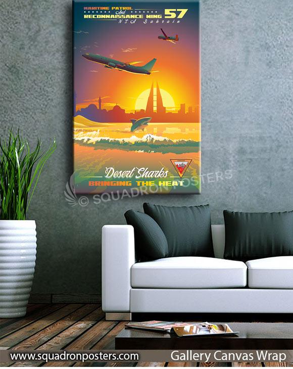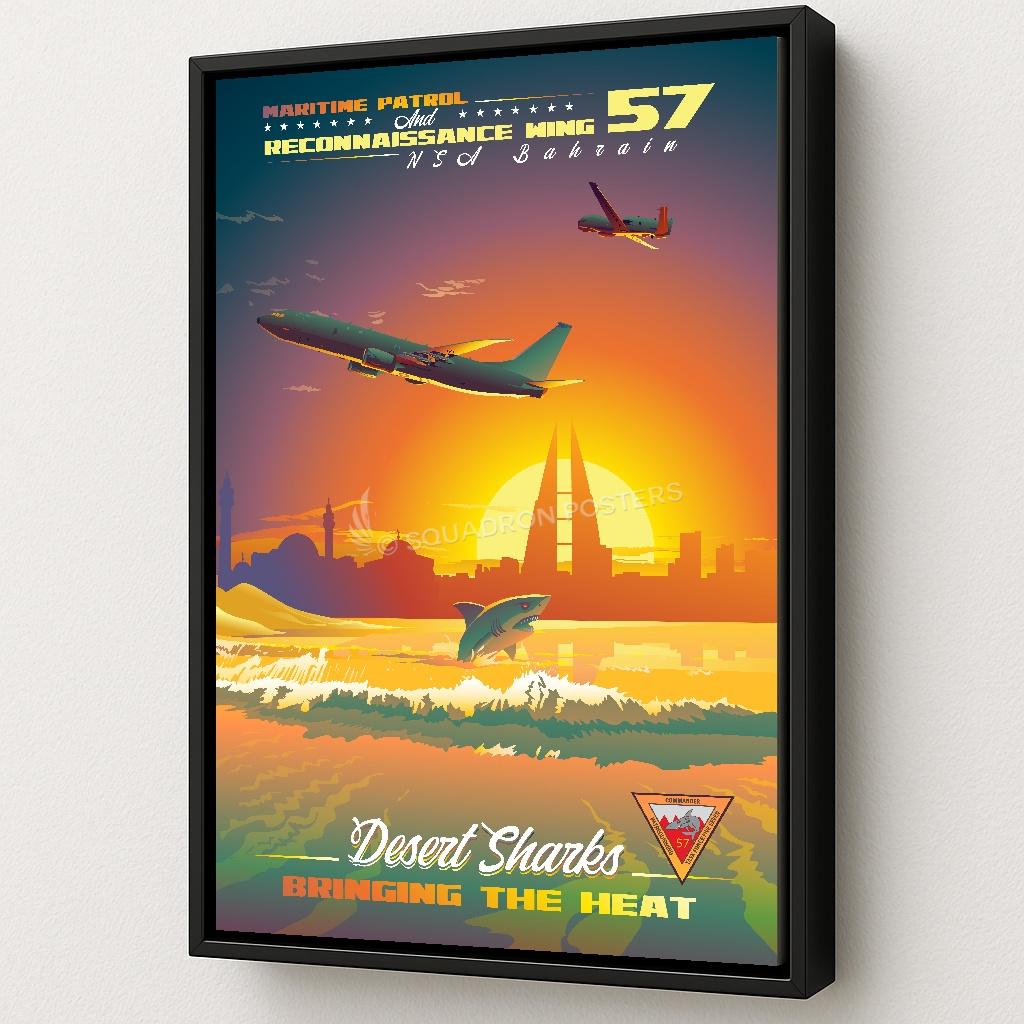 NSA Bahrain CTF-57 Desert Sharks vintage style military aviation travel poster art by – Squadron Posters!