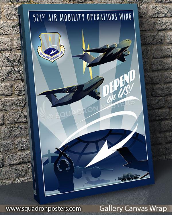 Celebrate the vital role of the 521st Air Mobility Operations Wing (521 AMOW) at Ramstein AFB with this striking canvas art piece. As the backbone of overseas mobility missions, the 521 AMOW at Ramstein ensures agile, rapid, and flexible responses to critical situations across Europe, Africa, and the Middle East. From command and control to aerial port operations, aircraft maintenance, and aeromedical evacuation, this wing embodies excellence in specialized tasks integral to global mobility operations. Whether providing humanitarian relief in Turkey after a devastating earthquake or supporting the Ukrainian Defense initiative, the 521 AMOW’s contributions are indispensable. Display this artwork as a tribute to the unwavering dedication and pivotal role of Ramstein AFB’s 521 AMOW in shaping the course of global mobility operations.