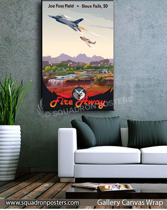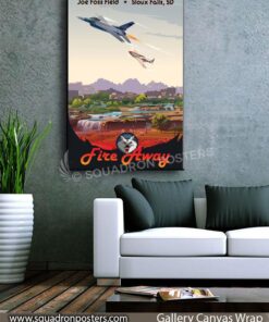 Sioux Falls Regional Airport also known as Joe Foss Field, is a public and military use airport three miles northwest of Sioux Falls, South Dakota, United States. It is named in honor of aviator and Sioux Falls native Joe Foss, who later served as the 20th Governor of South Dakota (1955–1959). Joe Foss Field Air National Guard Station is home to Headquarters, South Dakota Air National Guard and its 114th Fighter Wing (114 FW). The 114 FW is an Air Combat Command gained unit known as the “Fighting Lobos” and operates F-16C/D aircraft. The South Dakota Adjutant General is based in Camp Rapid in Rapid City, South Dakota, but the South Dakota Air National Guard is effectively headquartered with the 114 FW. Check out this stunning Sioux Falls South Dakota ANG 175th FS art by – Squadron Posters!Â