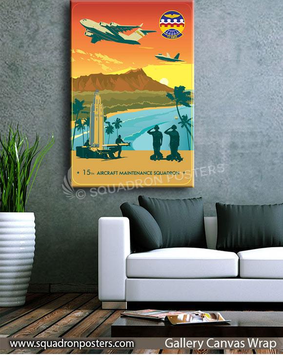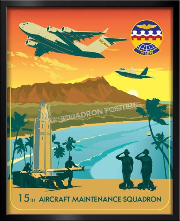 Joint Base Pearl Harbor-Hickam Hawaii 15th AMXS vintage style military aviation travel poster art by – Squadron Posters!