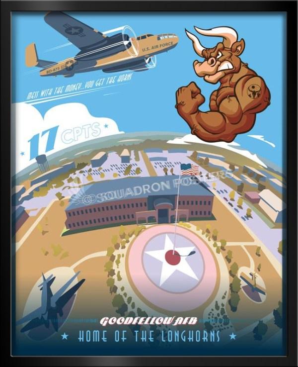 Goodfellow AFB Texas 17th CPTS Longhorns vintage style military aviation travel poster art by – Squadron Posters!