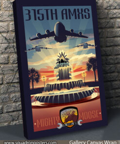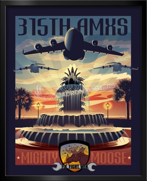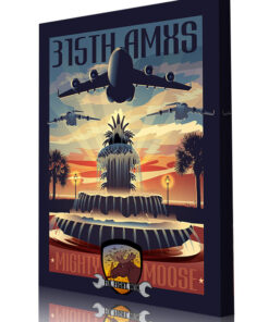 The 315th Aircraft Maintenance Squadron (315 AMXS) at Joint Base Charleston, SC, is a vital part of the 315th Airlift Wing. Tasked with maintaining a fleet of 40 C-17A Globemaster III aircraft, the squadron ensures these planes are ready for deployment anytime, anywhere. The “Mighty Moose” art embodies the dedication and readiness of the 315 AMXS team. This artwork is a tribute to the squadron’s relentless commitment to maintaining airlift capabilities for global missions.