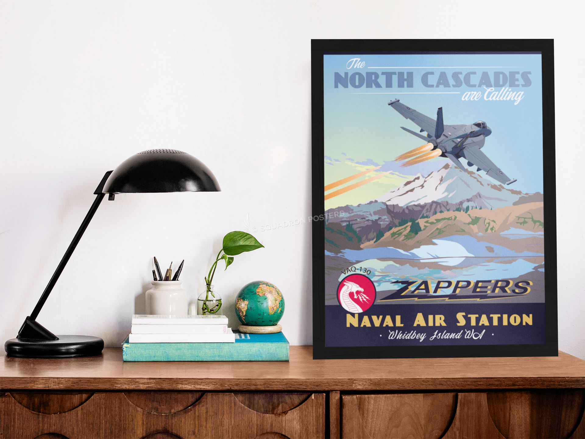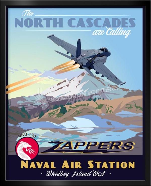 NAS Whidbey Island VAQ-130 Art vintage style military aviation travel poster art by – Squadron Posters!