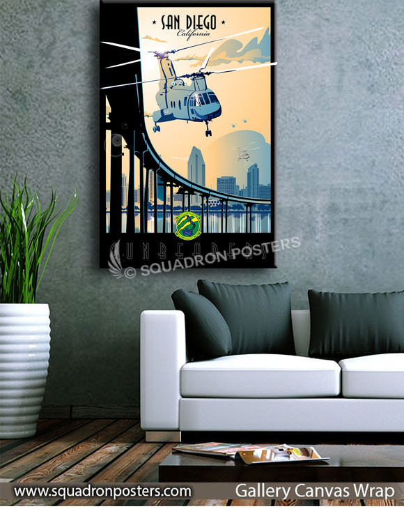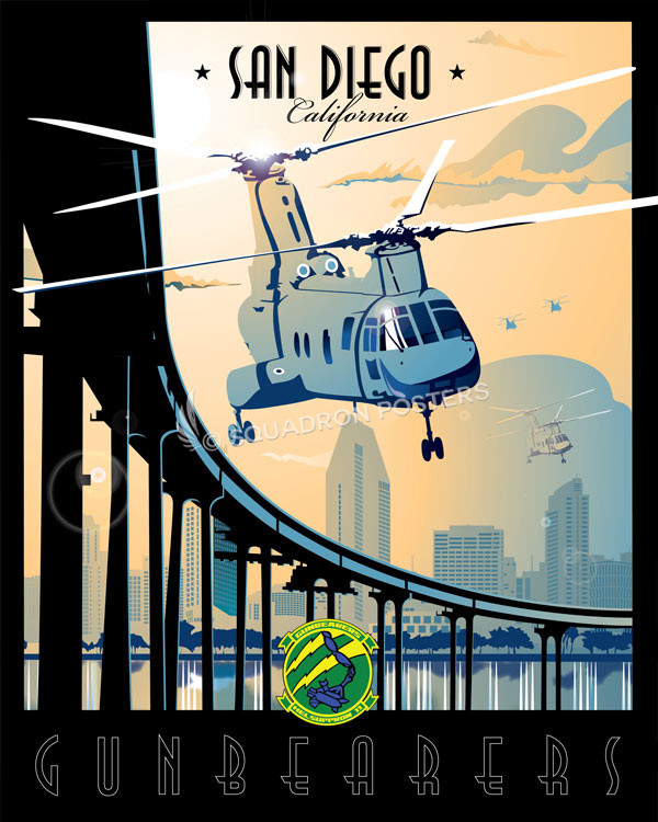 “San Diego HELSUPPRON ELEVEN (HC-11)” vintage style military aviation travel poster art by – Squadron Posters!