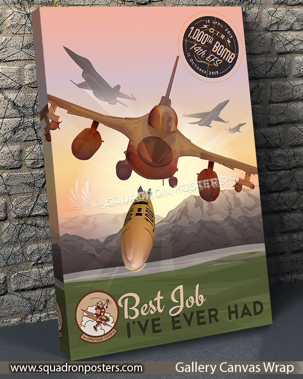 14th Expeditionary Fighter Squadron 1,000th bomb poster art.