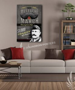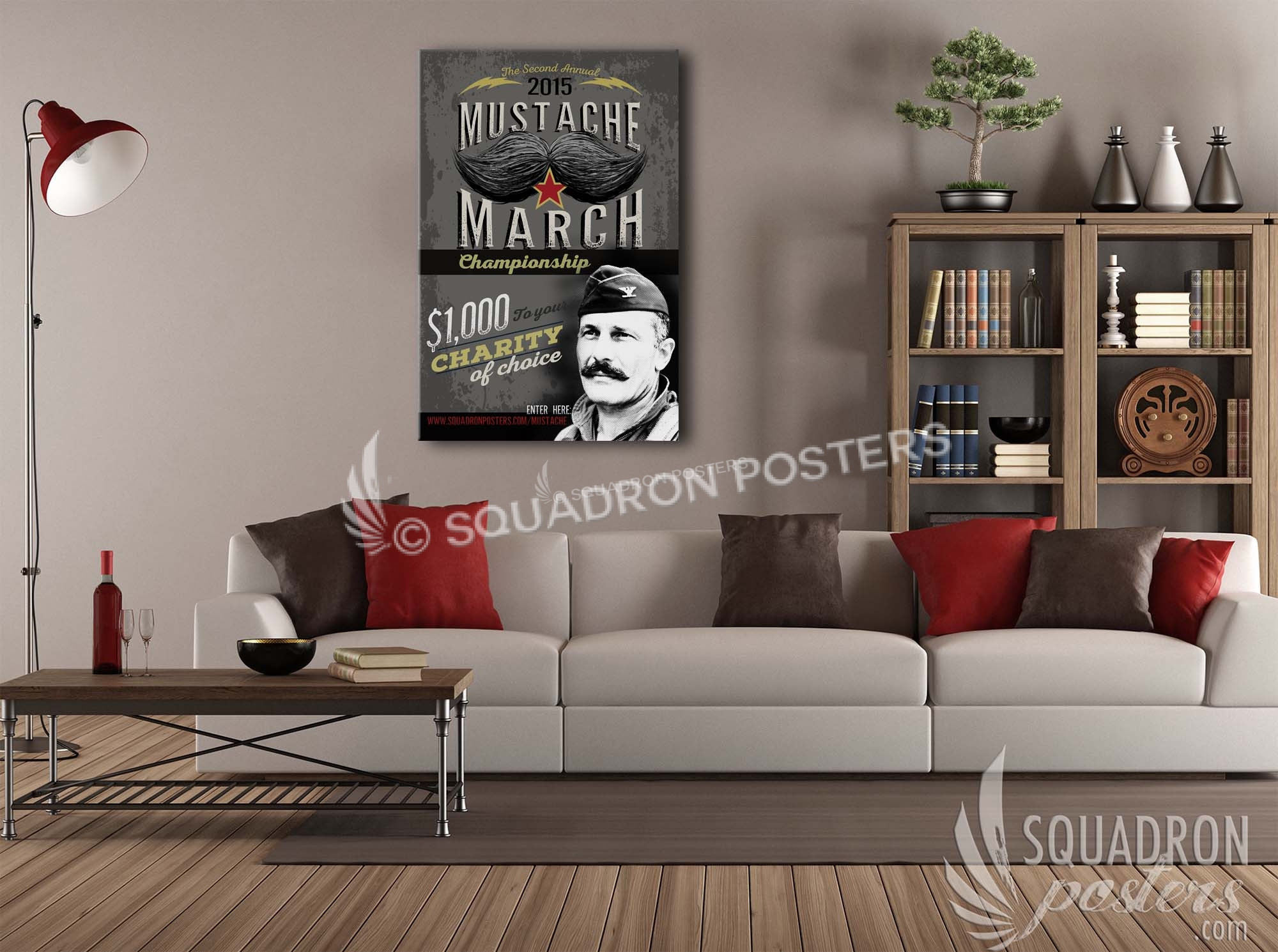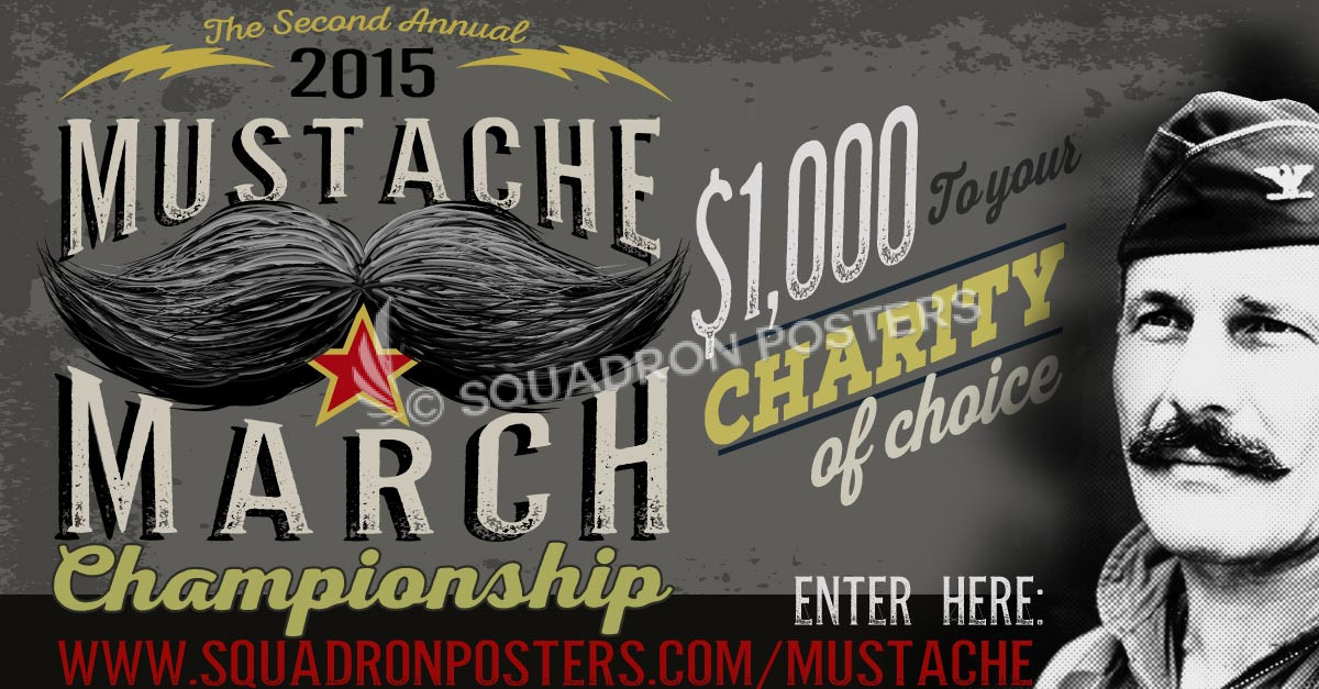 The incident with the mustache is given credit as the impetus for a new Air Force tradition,“Mustache March”, in which aircrew, aircraft maintainers, cyber operators, space operators and other Airmen worldwide show solidarity by a symbolic, albeit good-natured “protest” for one month against Air Force facial hair regulations…” In keeping with this tradition, Squadron Posters is proud to be the “Official Annual Military Mustache March Championship” sponsor.
