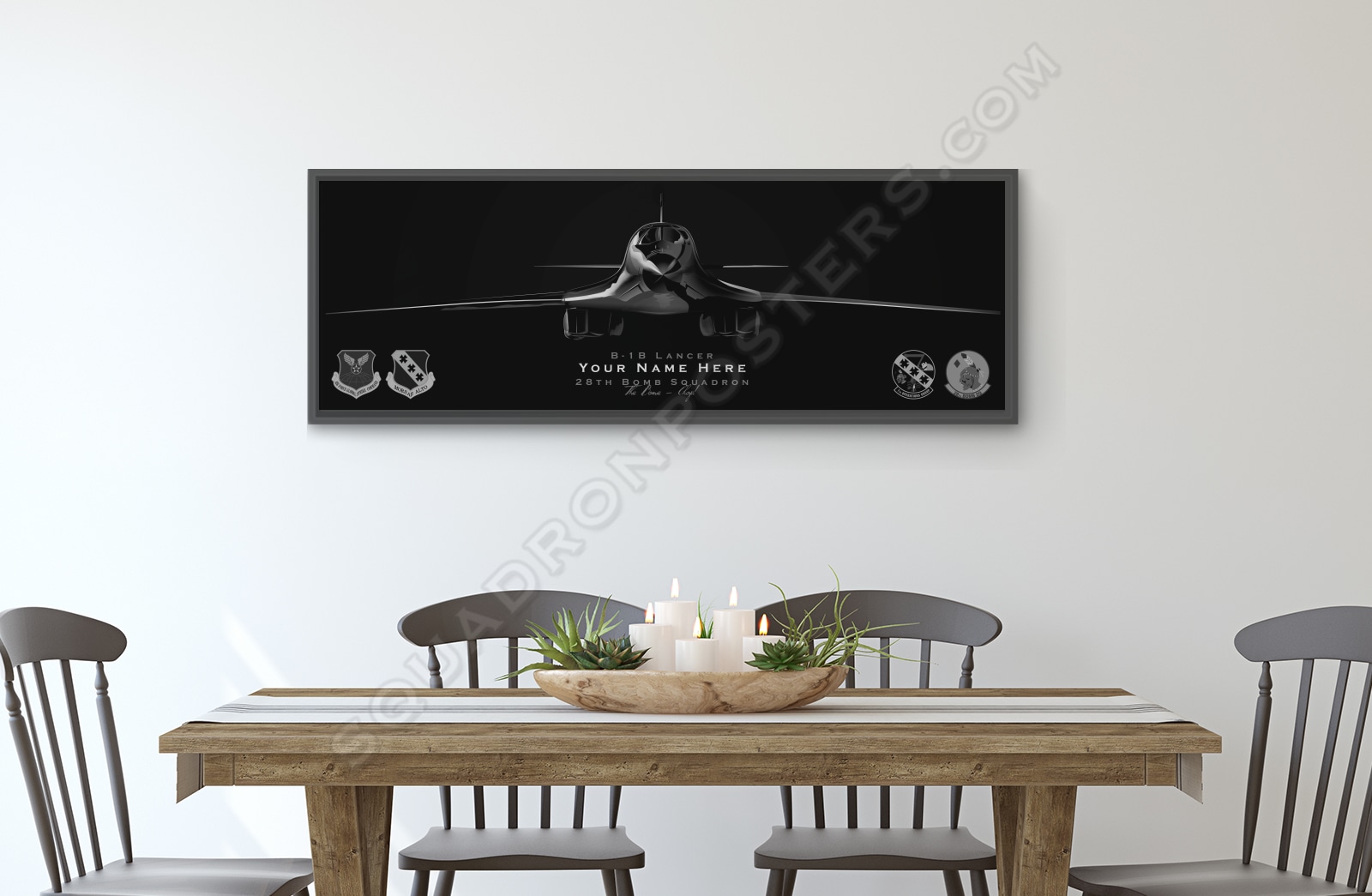 28th Bomb Squadron Poster Artwork – “Jet Black Super Wide” B-1B Lancer Bomber with Floating Black Gallery Frame.