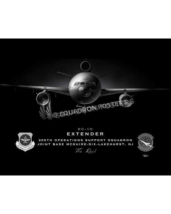 “305th OSS KC-10 Jet Black Lithograph” vintage style art by – Squadron Posters!