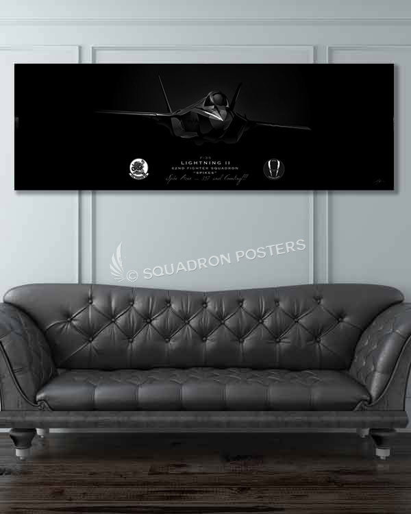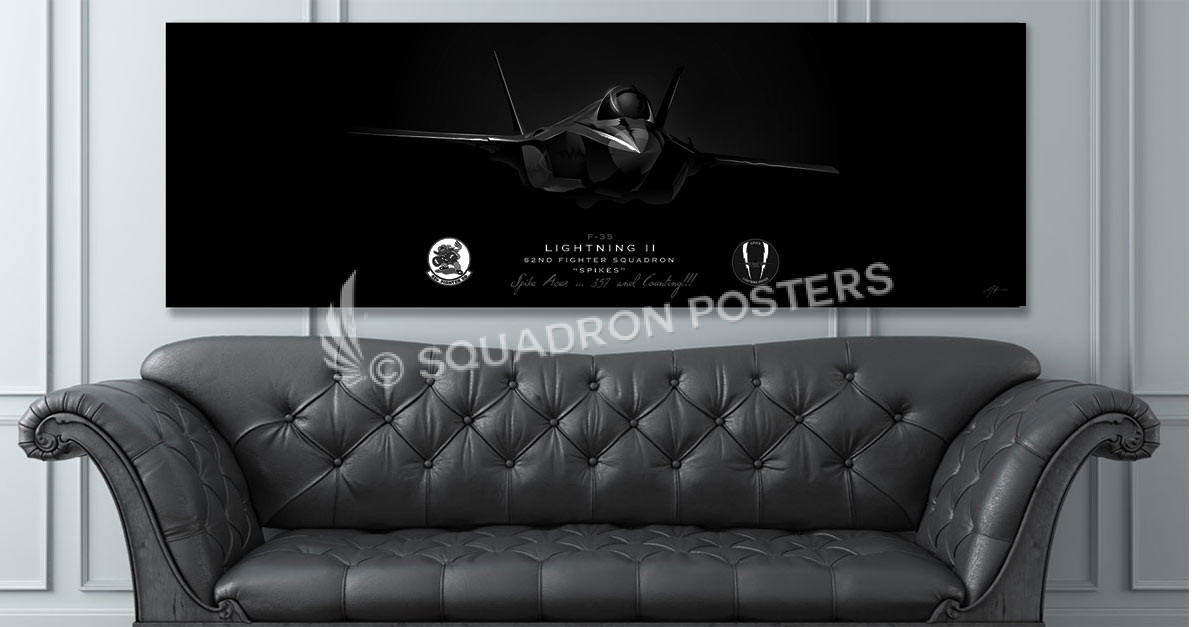 “62nd FS Jet Black F-35A Super Wide Canvas” vintage style military aviation travel poster art by – Squadron Posters!
