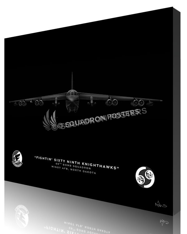 The 69th Bomb Squadron is part of the 5th Bomb Wing at Minot Air Force Base, North Dakota. The Squadron Operates B-52H Stratofortress which is a long range, heavy bomber that is the backbone of the manned strategic bomber force for the United States. It can carry nuclear or precision guided conventional ordnance with worldwide precision navigation capability.