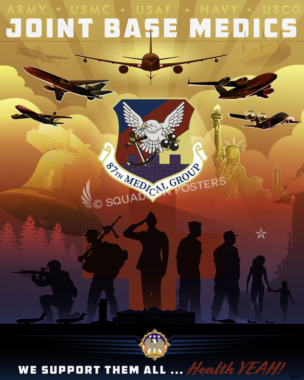 *The 87TH MDG also supports nearly 200,000 transient Total Force personnel training at JB MDL each year. Additionally, the 87 MDG provides 24/7/365 ambulance services and all-hazards medical response in support of emergency requirements across the 42,000-acre installation, which includes multiple airfields and ranges. 87 MDG was established as part of the 87th Troop Carrier Wing at Atterbury AFB, IN on 26 May 1952, activated in the Reserve on 15 June 1952, inactivated on 1 February 1953, and activated as part of the 87 ABW on 3 March 2009 when JB MDL was formed IAW BRAC requirements. McGuire is named after Maj Tommy B. McGuire (P-38/”Pudgy”) and Lakehurst was home/site of the Hindenburg crash. JB MDL is in the Pine Barrens of NJ, in the center of two of America’s greatest cities and symbols of freedom/liberty–45 minutes from Philadelphia (Liberty Bell) and an hour from NYC (Statue of Liberty)–and adjacent to the famous Jersey Shore.