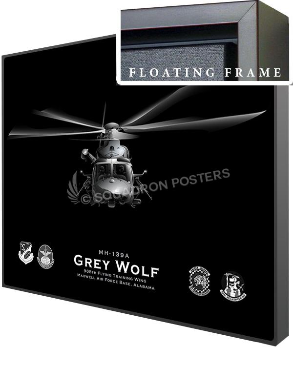 The MH-139A Grey Wolf is to be used for security patrols, search and rescue missions, and personnel and cargo transport. The Air Force’s first intention was to purchase 84 helicopters for security and transportation across extensive ICBM fields, and senior leader and executive airlift in the Air Defense Identification Zone (ADIZ), also known as the National Capital Region. It is also to be used in aircrew survival training. Check out this stunning 908th FTW MH-139A Jet Black Lithograph Art by – Squadron Posters! Collect all your travels and tell your story!