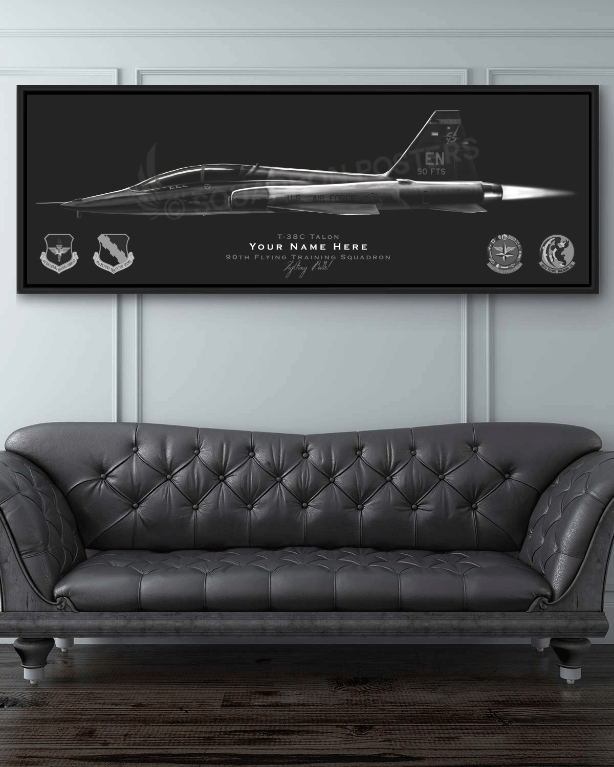 90th Flying Training Squadron (90 FTS) T-38C Talon Side Profile Lithograph Canvas Wrap on a floating frame.