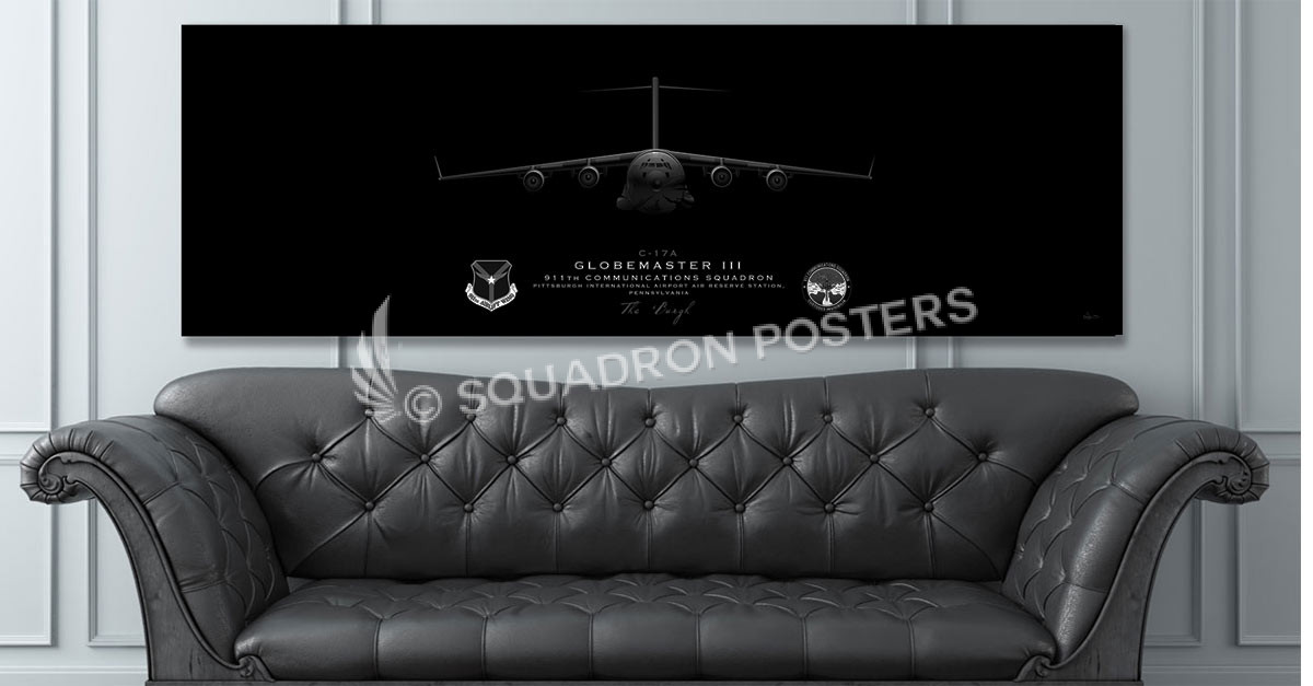911th CS C-17 Jet Black Super Wide Canvas Print by – Squadron Posters