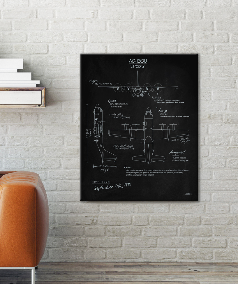 AC-130U Spooky Blackboard Art military aviation blueprint art by – Squadron Posters!