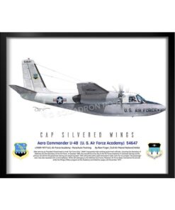 The Aero Commander U-4B, tail number 54647, is a unique aircraft that continued its United States Air Force service following its role as the “smallest Air Force One.” Known for its reliability and performance, the U-4B was used to transport high-ranking officials, including military leaders and government personnel. Later, the aircraft found its way to the Air Force Academy in Colorado Springs as the primary aircraft for the parachute training and skydiving team. This artwork captures the elegance and purpose of the U-4B, paying homage to its critical role in supporting Air Force missions and Air Force Academy training. This piece highlights the U-4B’s legacy, celebrating its contribution to both aviation history and national defense. – Ron Finger (Artist) SEP 2024.