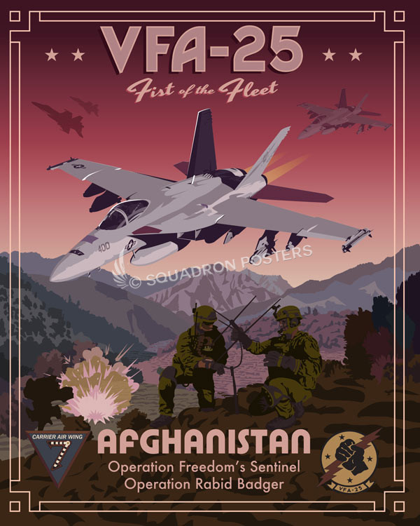 Afghanistan “Fist of the Fleet” VFA-25 vintage style military aviation travel poster art by – Squadron Posters!