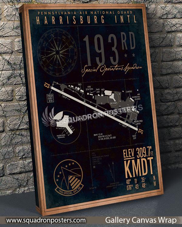 “KMDT Harrisburg PNG 193rd Special Operations Squadron Airfield Art” vintage style military aviation travel poster art by – Squadron Posters!