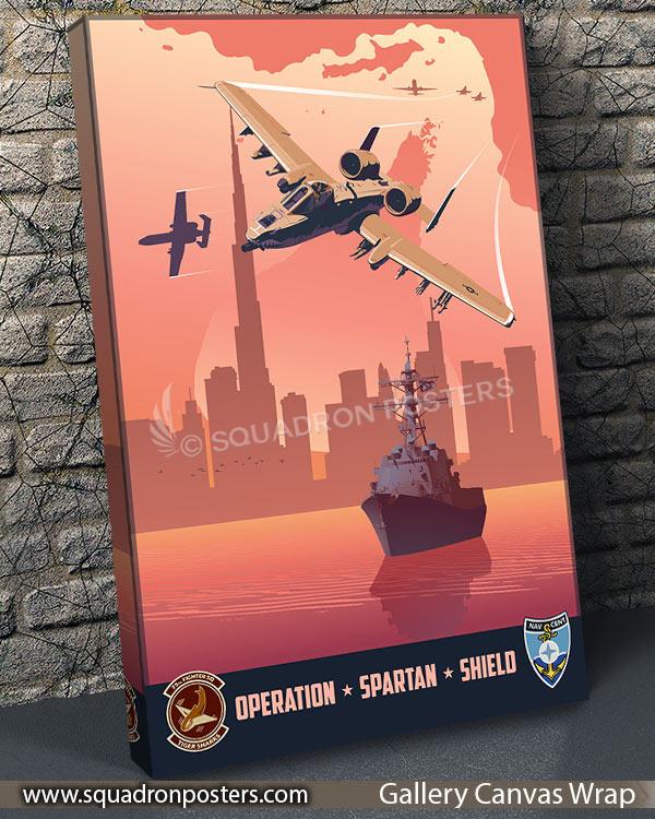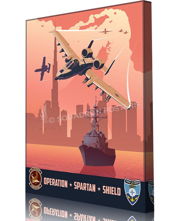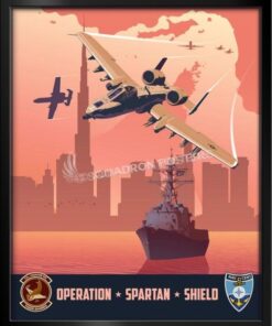 Al Dhafra AB UAE 75th FS Operation Spartan Shield vintage style military aviation travel poster art by – Squadron Posters!