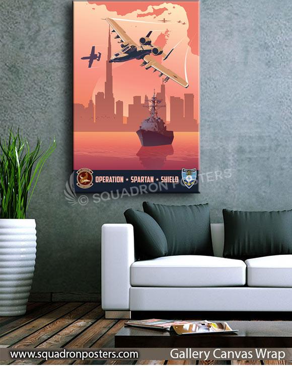 Al Dhafra AB UAE 75th FS Operation Spartan Shield vintage style military aviation travel poster art by – Squadron Posters!