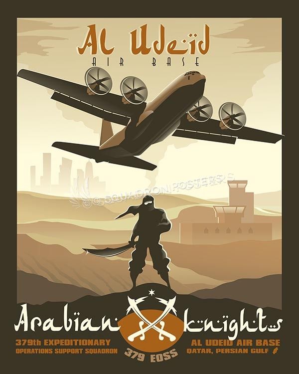 “Al Udeid – C-130J – 379th EOSS” vintage style military aviation poster art by – Squadron Posters!