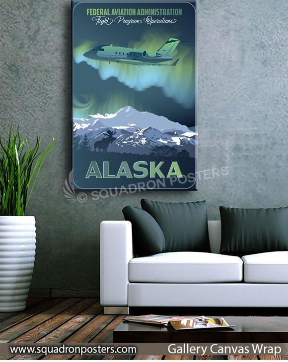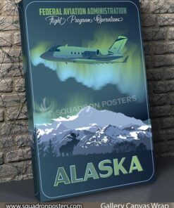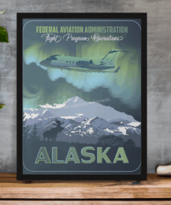 Flight Program Operations is responsible for FAA Flight Program safety, policy/standards, operations, training, maintenance, administrative services, financial and business management, acquisition, reporting, regulatory compliance, and other internal/external requirements. Flight Program Operations conducts multiple missions in FAA aircraft to include aviation safety training; flight inspection; research, development, test and evaluation support; and critical event response/transportation. Check out this stunning Alaska FAA Flight Program Operations Art by – Squadron Posters!