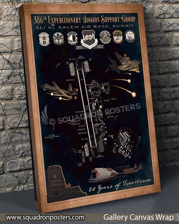 Ali Al Saleem Airfield 386 EMSG vintage style military aviation travel poster art by – Squadron Posters!