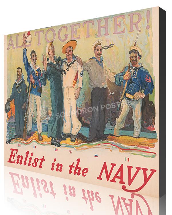 All Together Enlist in the Navy Historic vintage style military aviation travel poster art by – Squadron Posters!