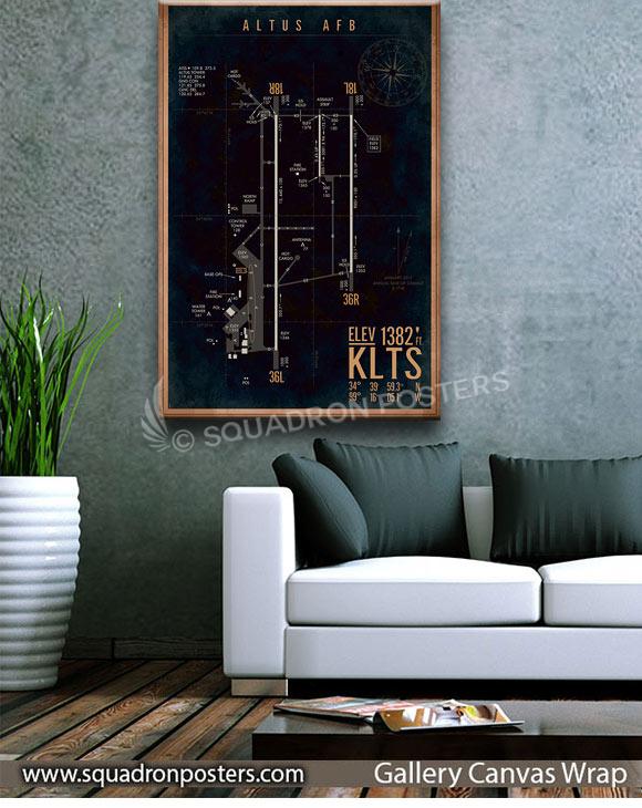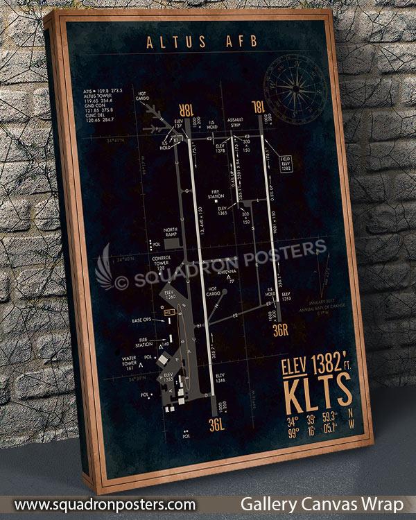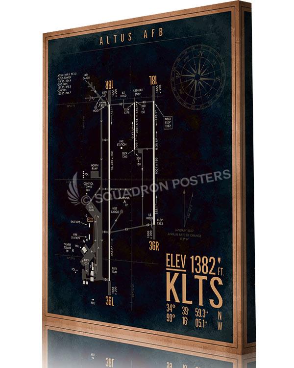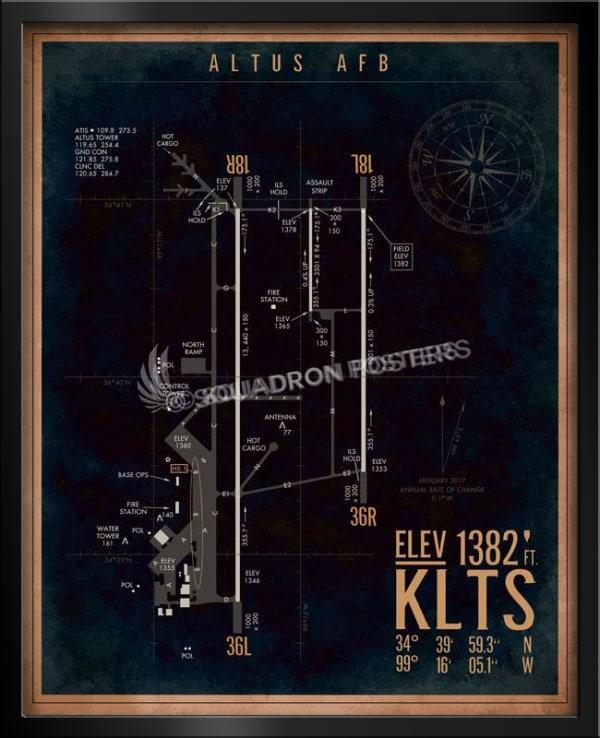 “Altus AFB KLTS Airfield Map Art” vintage style military aviation art by – Squadron Posters!