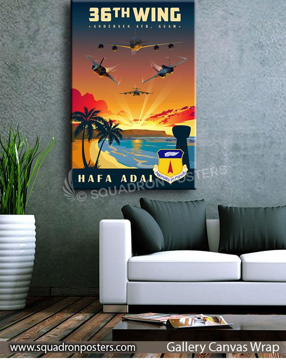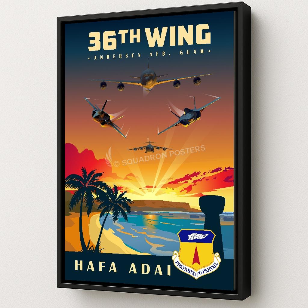 The 36th Wing is located on Andersen Air Force Base, Guam, one of the most strategically important bases in the Pacific. The 36th Wing plays a vital role in supporting regional stability and U.S. power projection throughout the Indo – Pacific . Although it has no permanently assigned aircraft, it hosts a wide range of fighter, tanker, and bomber units, making it a major logistics, support, and operations hub. Its mission is to be prepared to execute the pacing OPLAN.