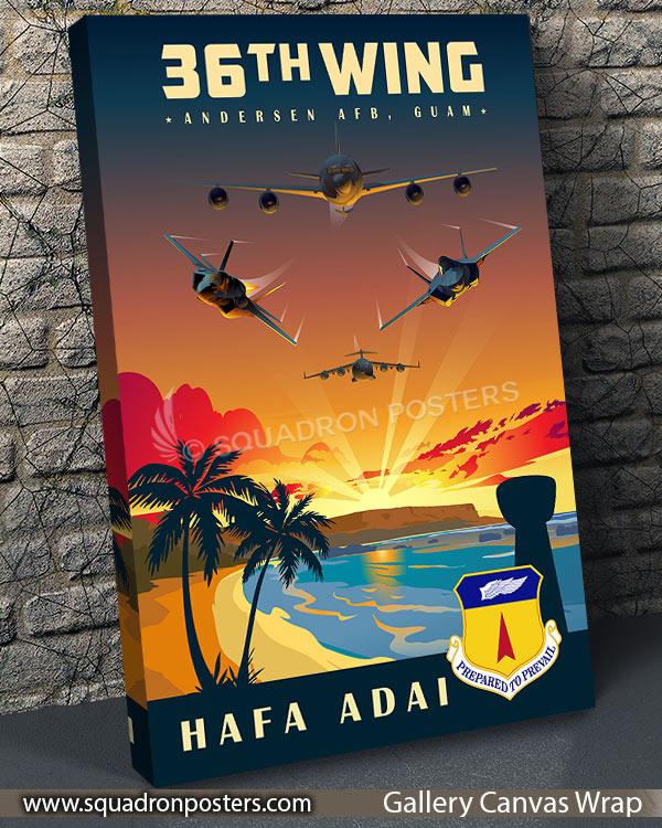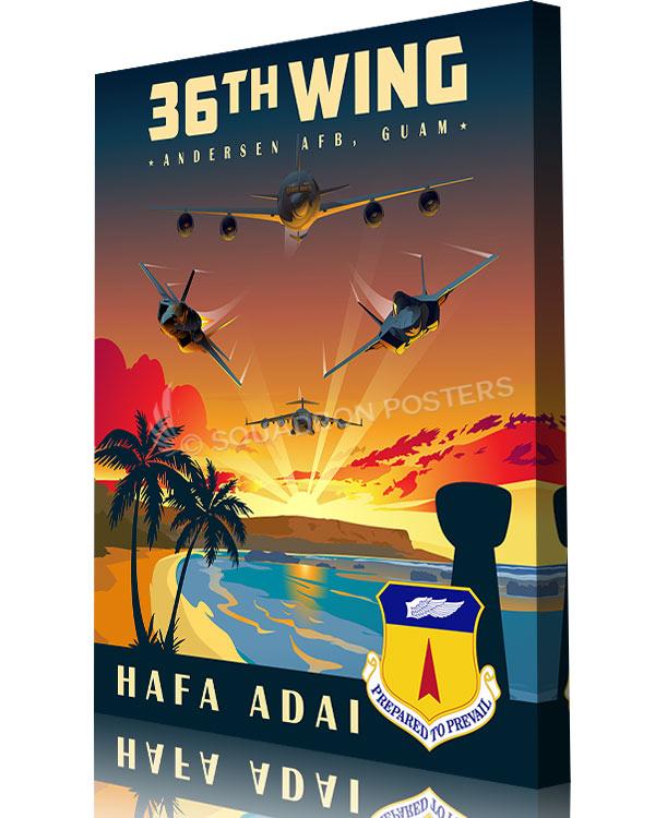The 36th Wing is located on Andersen Air Force Base, Guam, one of the most strategically important bases in the Pacific. The 36th Wing plays a vital role in supporting regional stability and U.S. power projection throughout the Indo – Pacific . Although it has no permanently assigned aircraft, it hosts a wide range of fighter, tanker, and bomber units, making it a major logistics, support, and operations hub. Its mission is to be prepared to execute the pacing OPLAN.