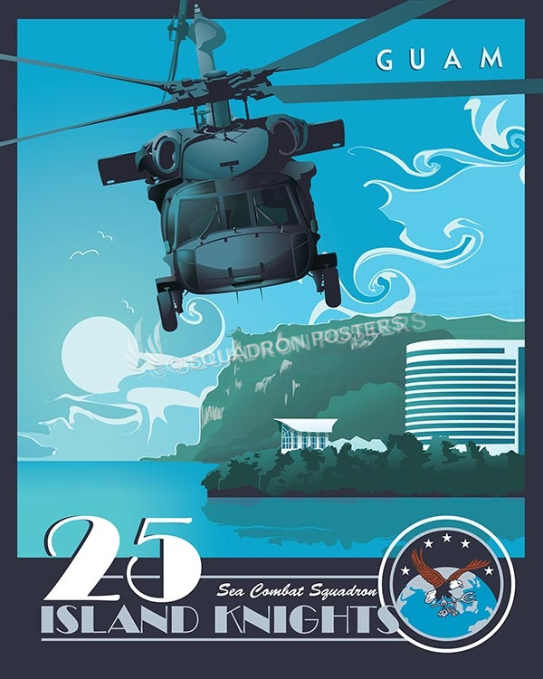 Helicopter Sea Combat Squadron Twenty Five (HSC-25) ‘Island Knights‘ is a U.S. Navy helicopter squadron based at Andersen Air Force Base, Guam. The ‘Island Knights’ are the Navy’s only forward deployed Helicopter Sea Combat Squadron. HSC-25 flies the MH-60S ‘Knighthawk‘ helicopter, manufactured by Sikorsky Aircraft Corporation in Stratford, Connecticut. Andersen Air Force Base is located approximately 4 miles northeast of Yigo near Agafo Gumas in the United States territory of Guam. Along with Naval Base Guam, Andersen AFB was placed under the command of Joint Region Marianas on October 1, 2009. The two bases are about 30 miles away at opposite ends of the island. Administration offices for Joint Region Marianas are about half-way in between, at Nimitz Hill.