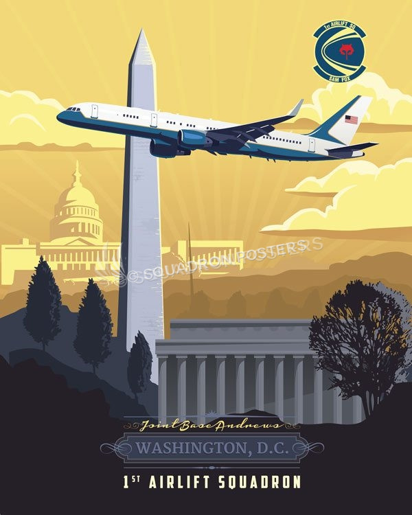 Andrews AFB 1st Airlift Squadron vintage style military aviation art by – Squadron Posters!