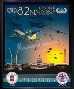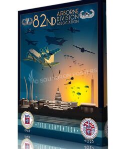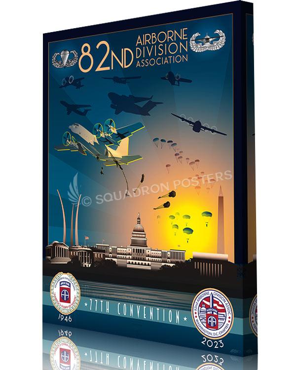 Andrews AFB 82d Airborne ADA 77th Convention canvas art is a high-quality print of an original artwork depicting the convention of the 82d Airborne Division Association at Andrews Air Force Base. The canvas is made of durable material and is a great addition to any military or aviation-themed décor.