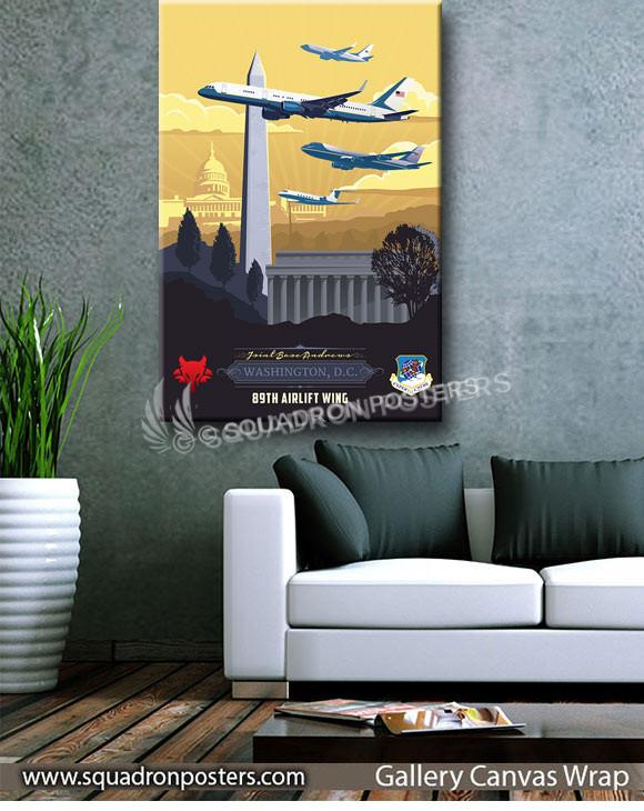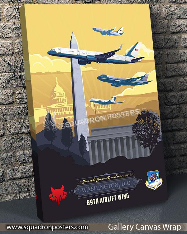 “Andrews AFB 89th Airlift Wing” vintage style military aviation travel poster art by – Squadron Posters!