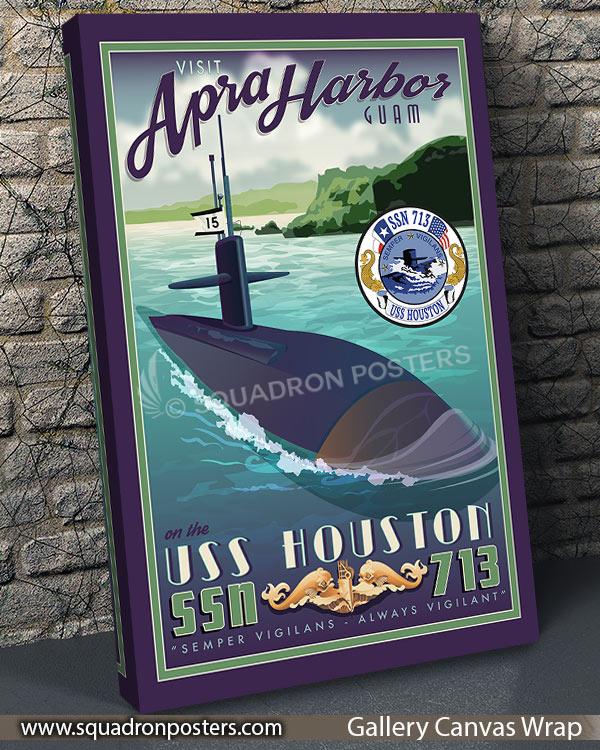 Apra Harbor Guam USS Houston SSN 713 vintage style military aviation travel poster art by – Squadron Posters!