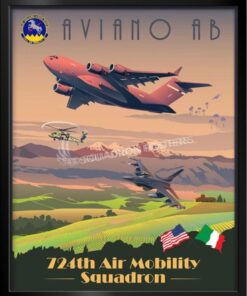 Aviano Air Base, located in northeastern Italy, is a pivotal hub for U.S. and NATO air operations in Europe. Home to the 31st Fighter Wing, Aviano AB plays a crucial role in maintaining regional stability and projecting power across the Mediterranean and beyond. Its strategic location allows for rapid deployment and support of missions throughout Europe, the Middle East, and Africa. The base supports a diverse array of aircraft and missions, from fighter operations to air mobility. With a rich history and a commitment to excellence, Aviano AB continues to be a vital link in the chain of global security and defense. Check out this stunning Aviano AB 724th AMS Art by – Squadron Posters! Collect all your military travels and tell your story!