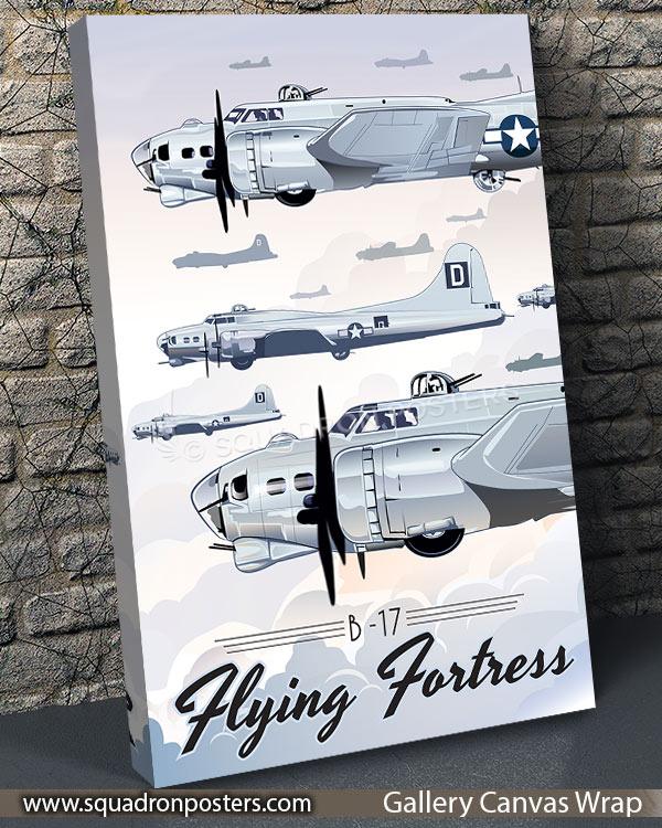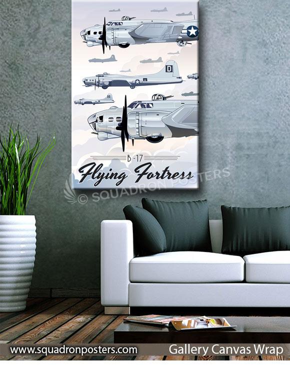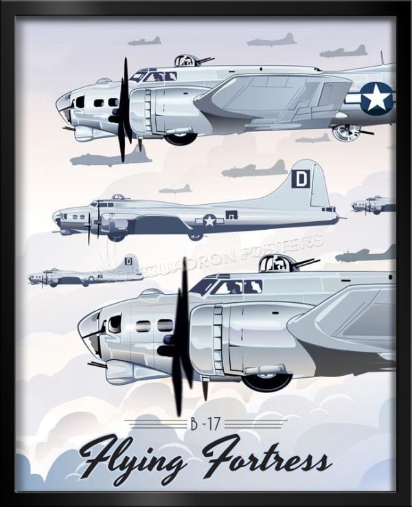 B-17 Flying Fortress vintage style military aviation travel poster art by – Squadron Posters!