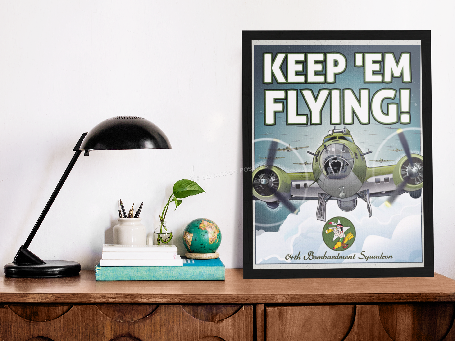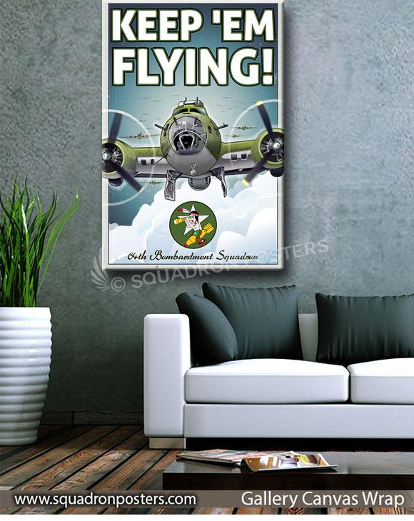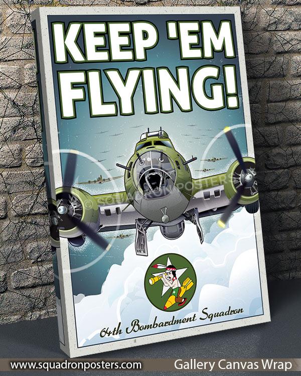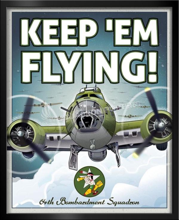 B-17 Flying Fortress Keep em Flying 64th BS vintage style military aviation travel poster art by – Squadron Posters!
