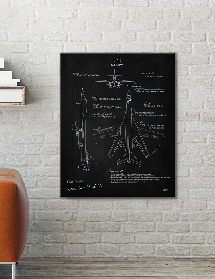 “B-1B Lancer Blackboard Art” military aviation blueprint art by – Squadron Posters!