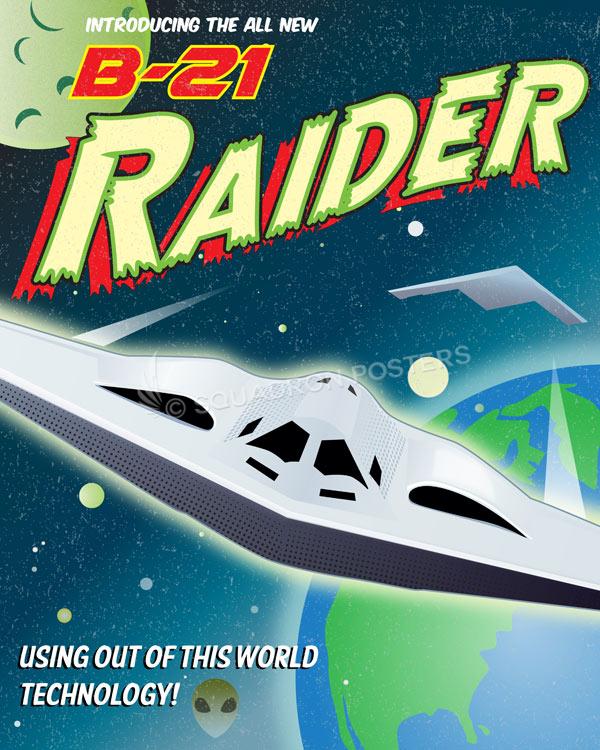 B-21 Raider Pop Art vintage style military aviation travel poster art by – Squadron Posters!