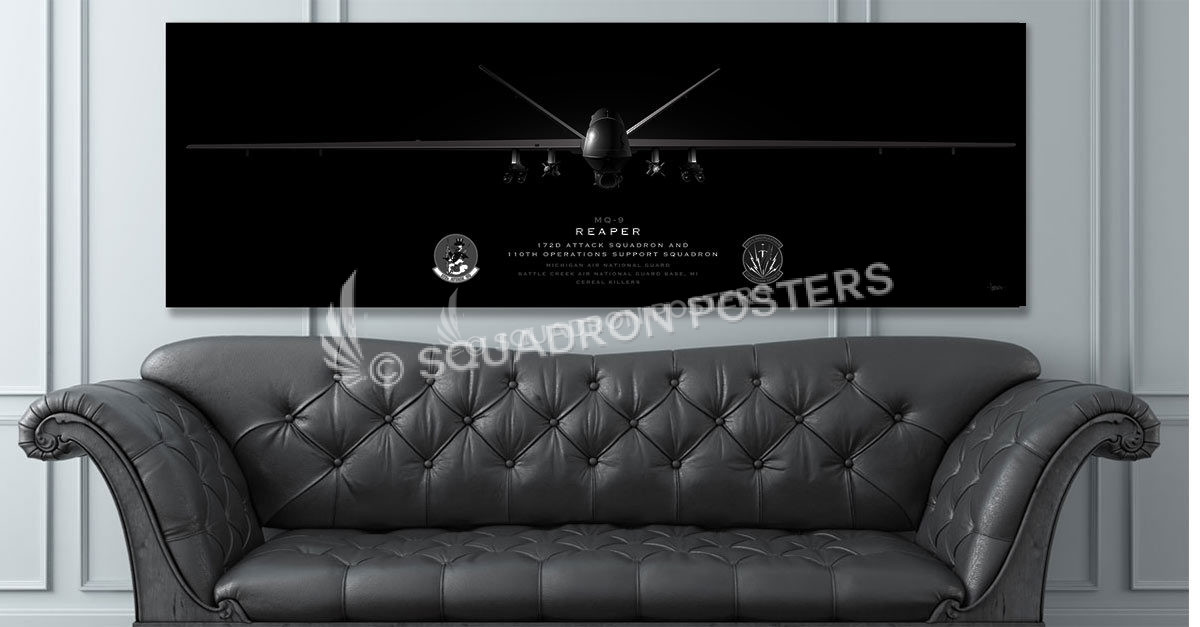 Battle Creek ANGB MQ-9 172d and ATKS 110 OSS Jet Black Super Wide v2 by – Squadron Posters