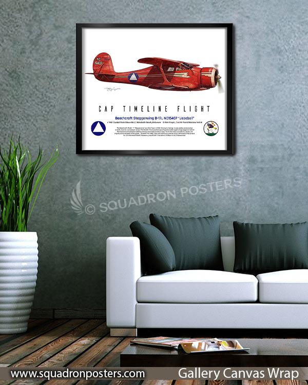 The Beechcraft Staggerwing B-17L, revered for its distinctive design and performance, holds a special place in the hearts of aviation enthusiasts and history aficionados. Marked by the registration NC15407, this canvas art piece adds a personalized touch, symbolizing the unique journey and stories woven into the fabric of this remarkable aircraft. Whether you’re an aviation enthusiast, a vintage aircraft aficionado, or simply appreciate the legacy of flight, this canvas art beautifully captures the enduring charm of the Beechcraft Staggerwing B-17L, NC15407, within the Civil Air Patrol.