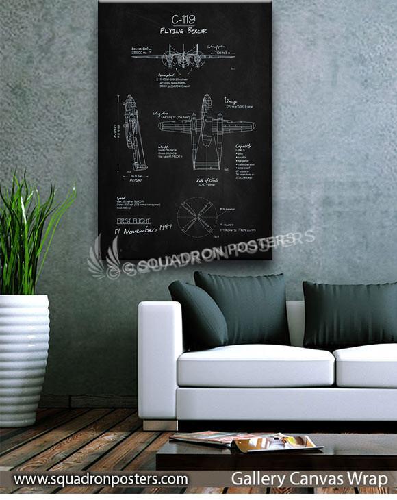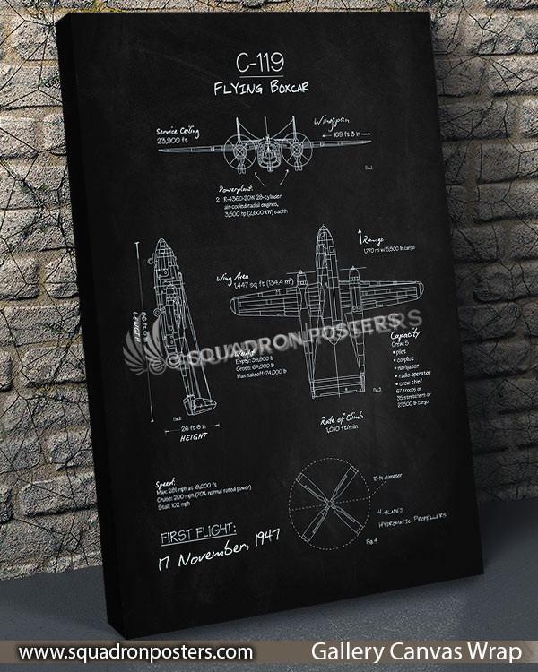 “C-119 Flying Boxcar Blackboard” vintage style military aviation travel poster art by – Squadron Posters!